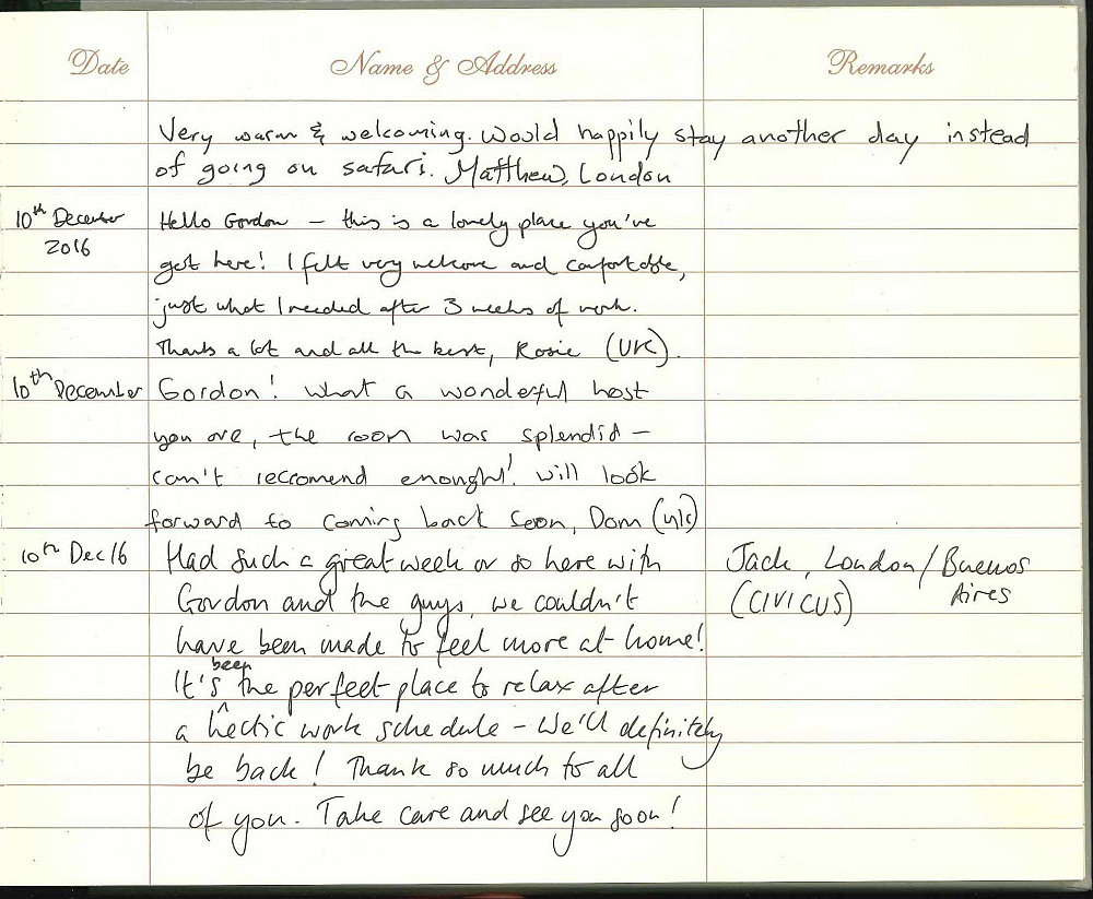 Comments from previous guests that have stayed with us at Thornton Gap Guesthouse – Please click on the page to enlarge.